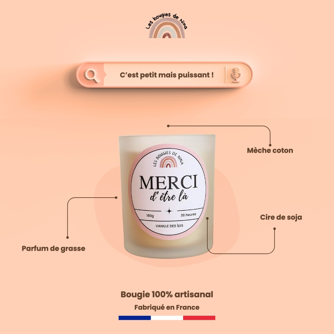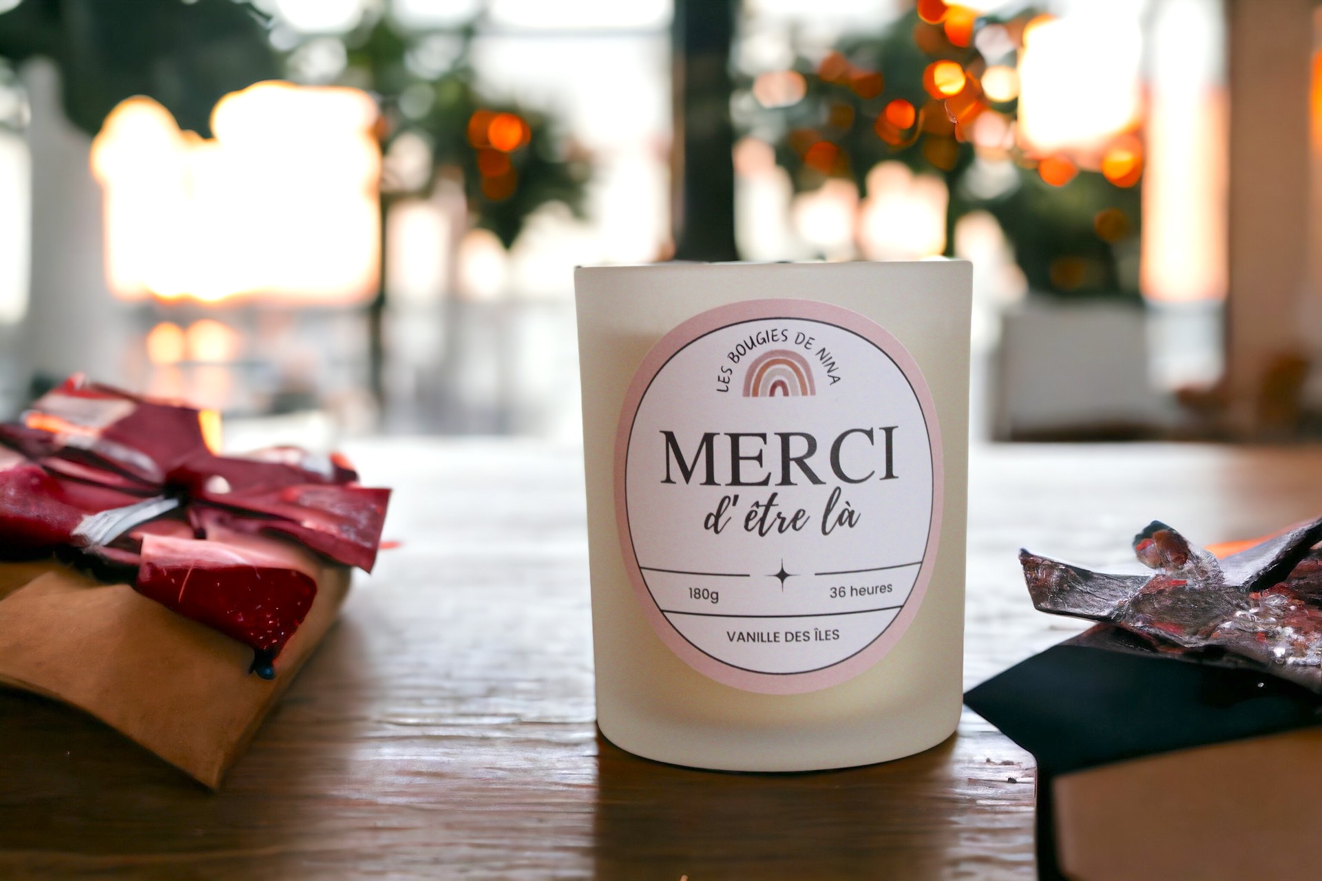 La bougie « Merci d’être là » est parfaite pour montrer à quel point il ou elle compte pour vous. Une petite attention qui lui ira droit au cœur.