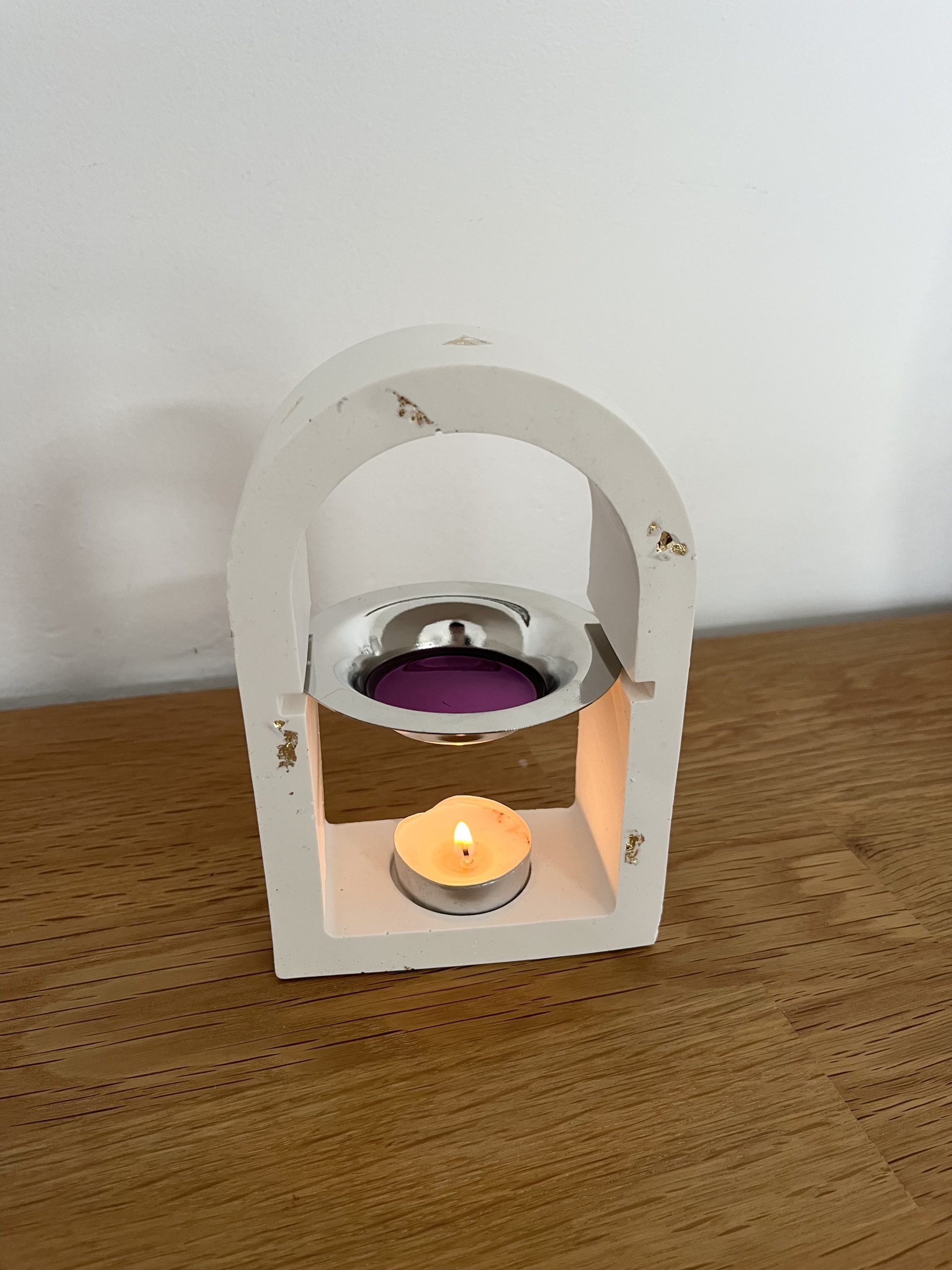 Brûleur en Jesmonite, vendu avec la coupelle et la bougie chauffe-plat.